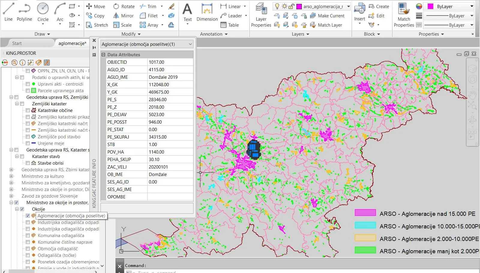 S King.Prostor lahko dobite podatke o aglomeracijah kar v dwg in jih kombinirate s podatki o parcelah, stavbah, naslovih, GJI podatki o kanalizacijski infrastrukturi…