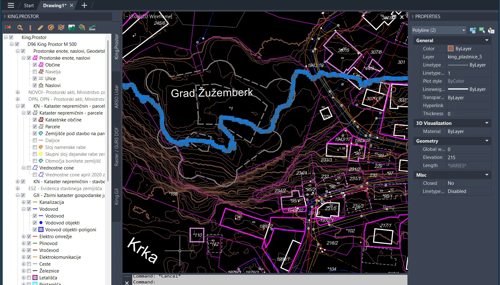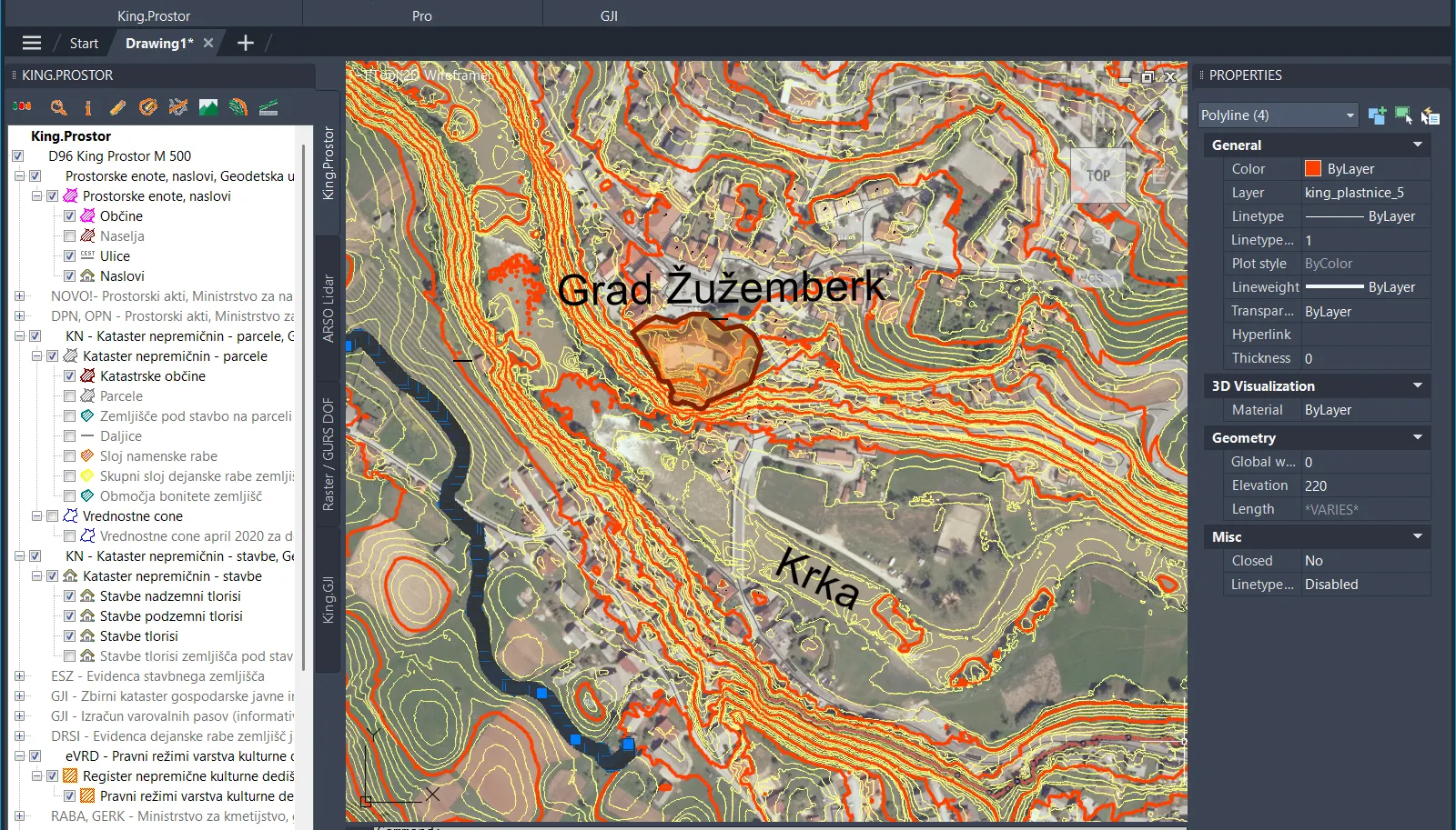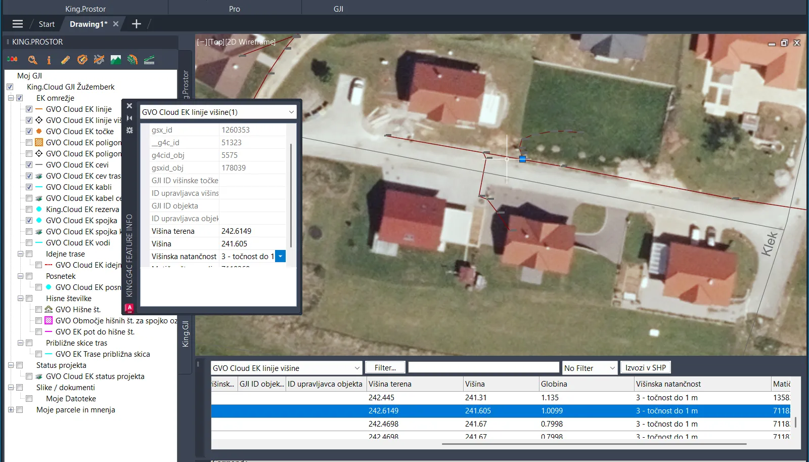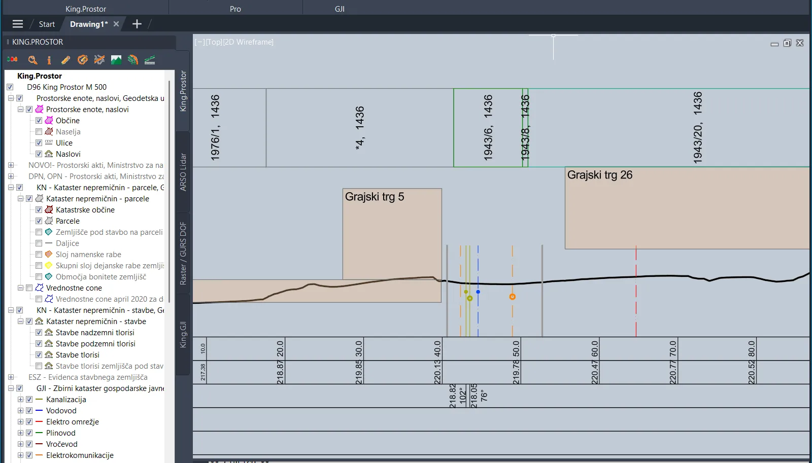 Več o King.Prostor prerezih si lahko ogledate na: Video - izriši prerez s stavbami, parcelami in GJI.
