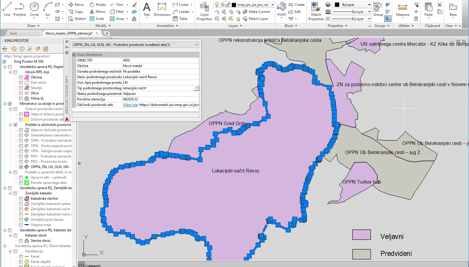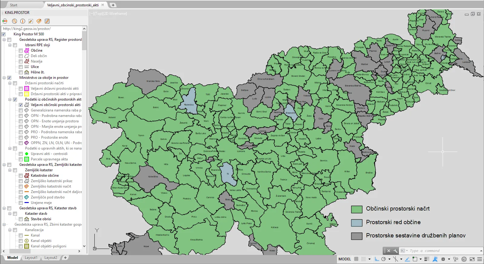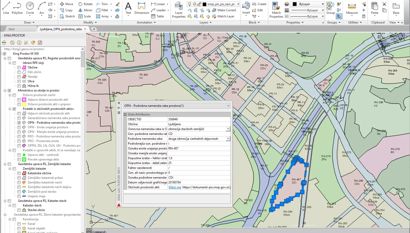 V King.Prostor je sedaj dostopnih še 7 novih slojev podatkov iz občinskih prostorskih aktov. EUP, PEUP in podrobna raba prostora iz OPN in PRO občin ter območja veljavnih in predvidenih prostorskih izvedbenih aktov (OPPN, LN, OLN, ZN in UN). Podatki so nova pridobitev zbirke podatkov Prostorskega informacijskega sistema Ministrstva za okolje in prostor.