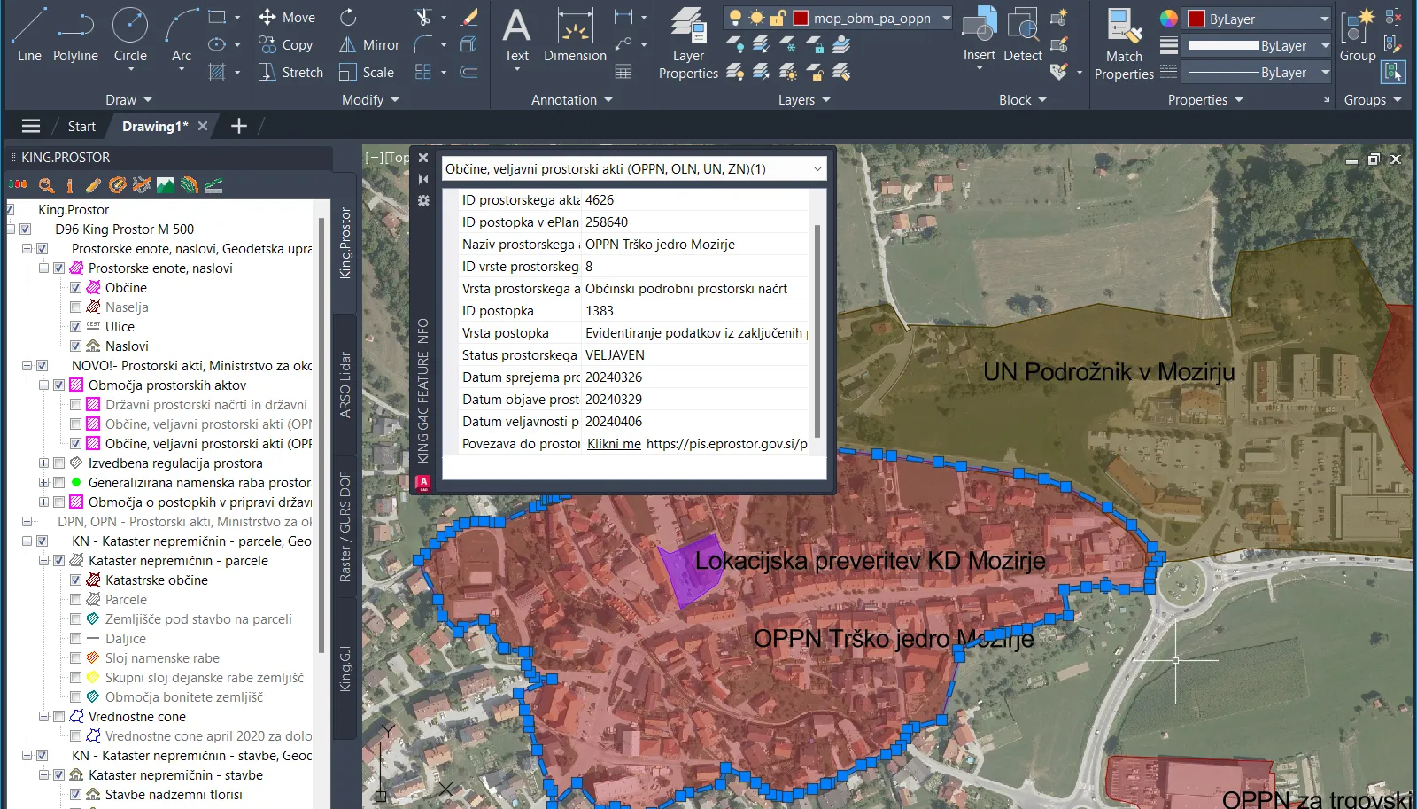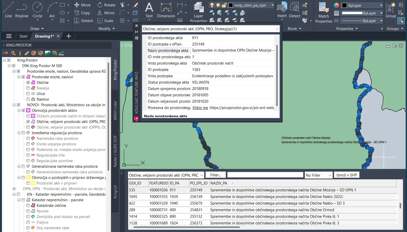 Za večjo preglednost so v King.Prostor podatki o območjih prostorskih aktov razdeljeni na tri nove sloje:
