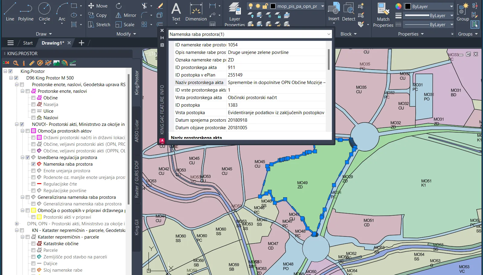 V King.Prostor so na voljo novi podatki s področja prostorskega načrtovanja. Dodani so sloji z območji veljavnih prostorskih aktov ter sloji, ki prikazujejo namensko rabo prostora, enote in podenote urejanja prostora, regulacijske črte ter regulacijske površine.
