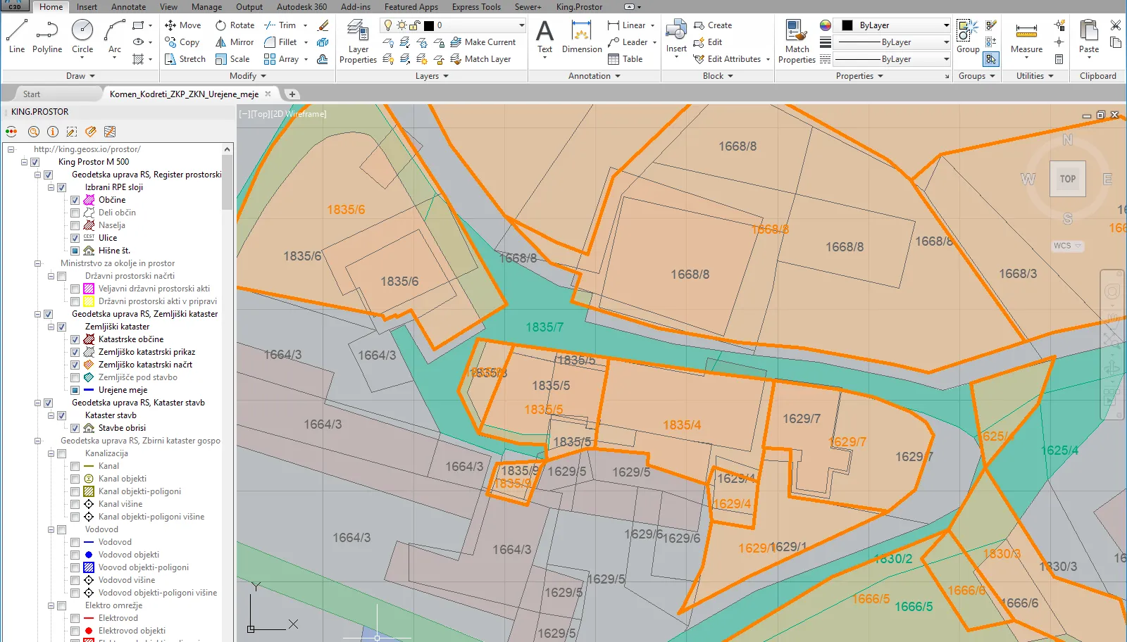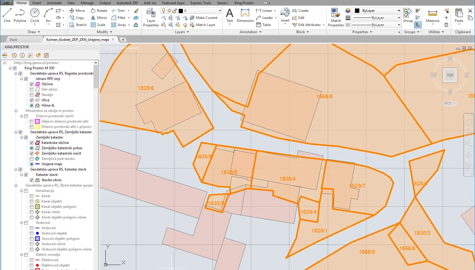 V King.Prostor so dostopni podatki zemljiškega katastra. Zemljiški kataster ima več grafičnih prikazov parcel: zemljiško katastrski prikaz (ZKP), zemljiško katastrski načrt (ZKN), zemljišče pod stavbo (ZPS) in urejene meje. Ti grafični prikazi med sabo niso nujno usklajeni.