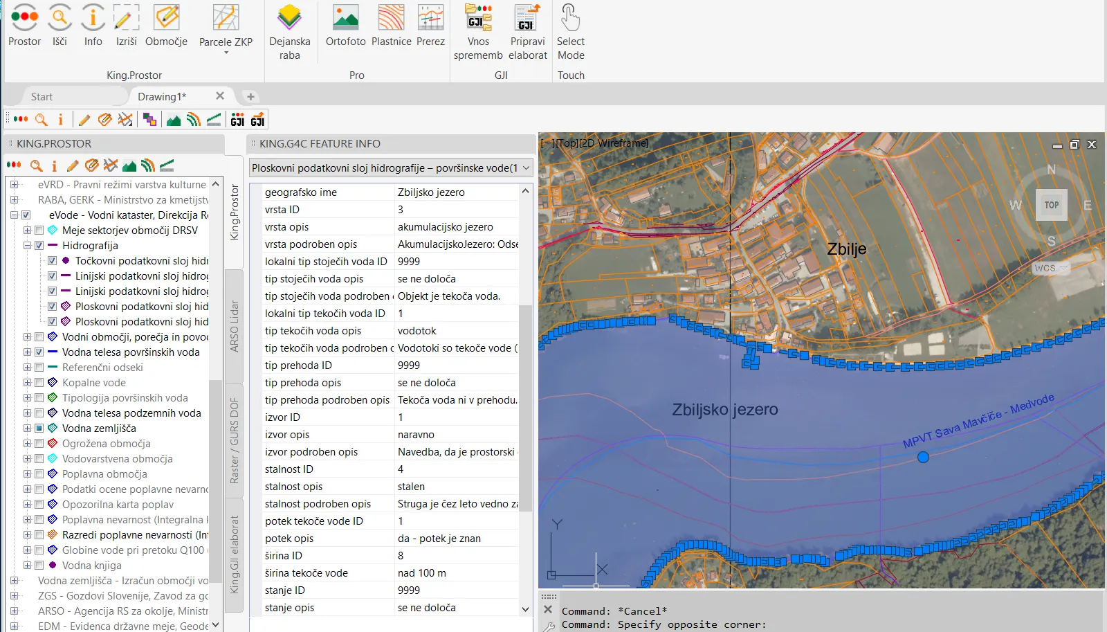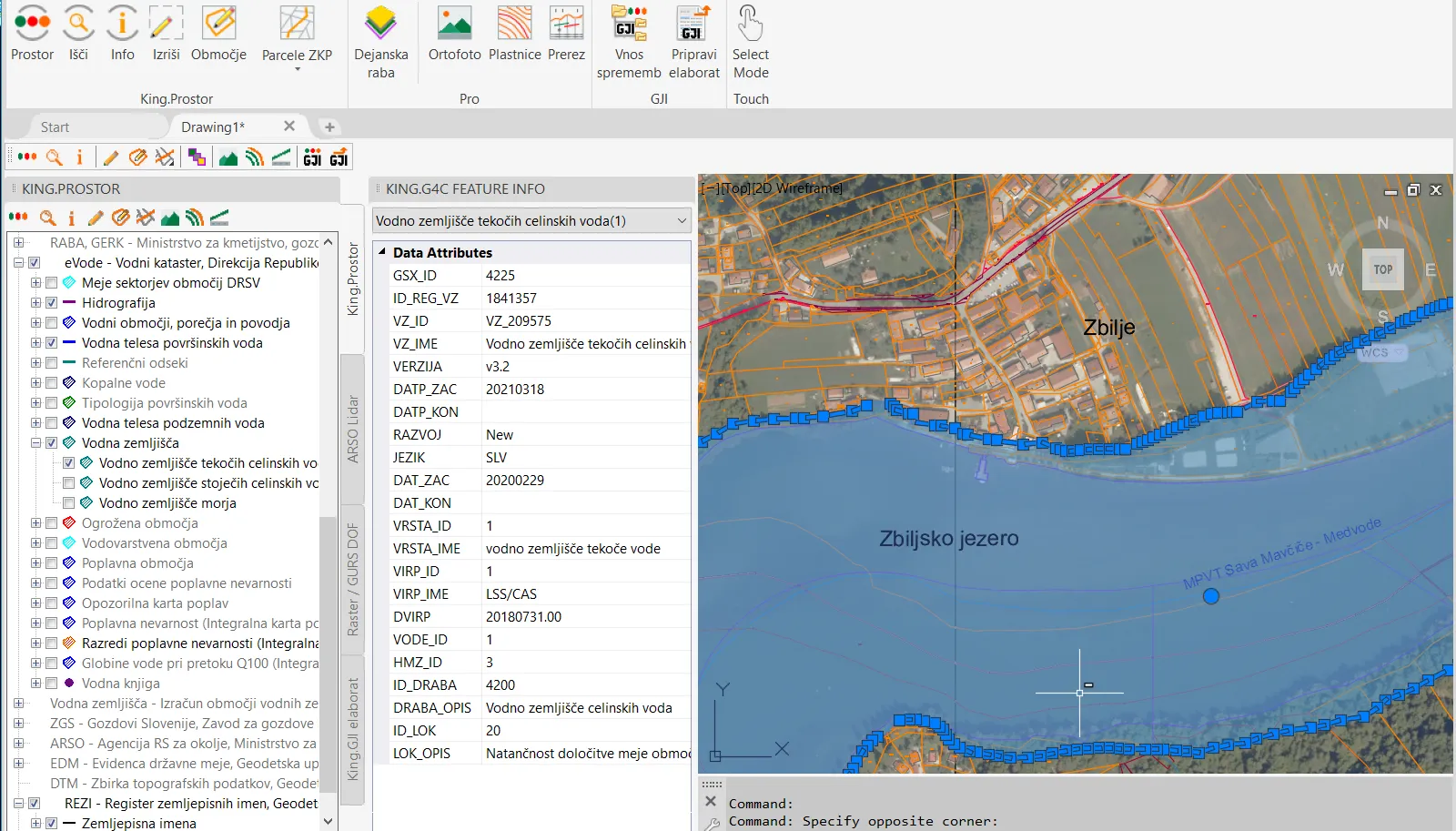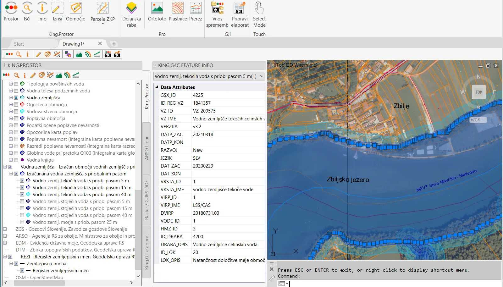 Če še niste preizkusili King.Prostor, naredite to zdaj in na klik izrišite še druge podatke Vodnega katastra in drugih javnih prostorskih evidenc v vaš DWG.
