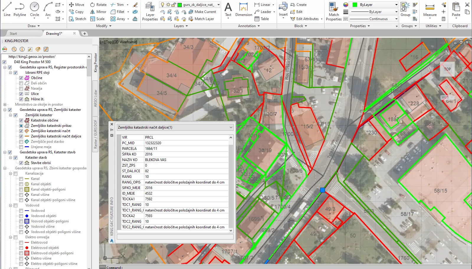 V King.Prostor smo nadgradili prikaz zemljiško katastrskega načrta, in sicer prikaz parcelnih mej - daljic, tako da se glede na lokacijsko natančnost prikažejo v različnih barvah in debelinah.