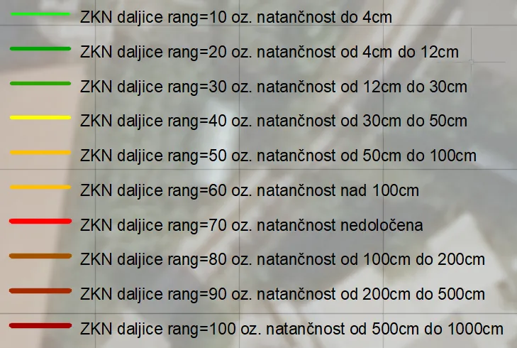 Lokacijska natančnost parcelne meje je del atributnih podatkov sloja ZKN daljice in je zapisana v atributu rang. Vsaka daljica vsebuje podatke: o ZK točkah, ki definirata to daljico, o rangu teh dveh ZK točk in o rangu same daljice. Rang daljice je določen kot večji rang med dvema točkama, ki določata to daljico. Večji rang pa pomeni slabšo kvaliteto oz. slabšo lokacijsko natančnost.